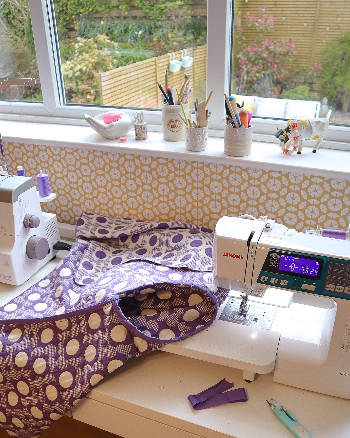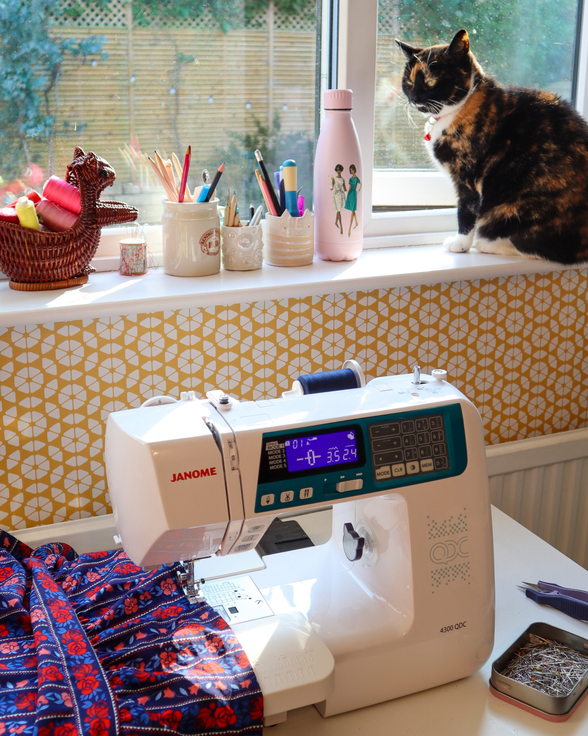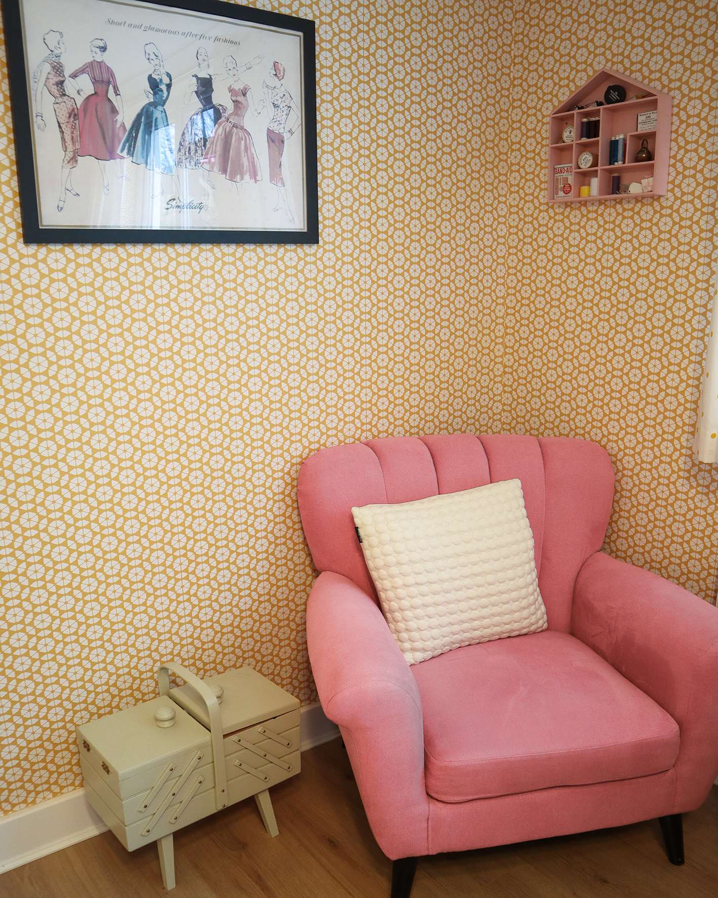 As you might remember, I moved house in Jan 2021 and wasn’t able to replicate the space I had in my previous house. I was still able to keep my long Ikea desk for my sewing machine and overlocker to sit side by side. Plus the famous pink chair that I always get positive comments about on social media.